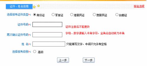 六:填写个人证件号码、姓名信息和报考级别,点击下一步。http://www.gkkp.net/