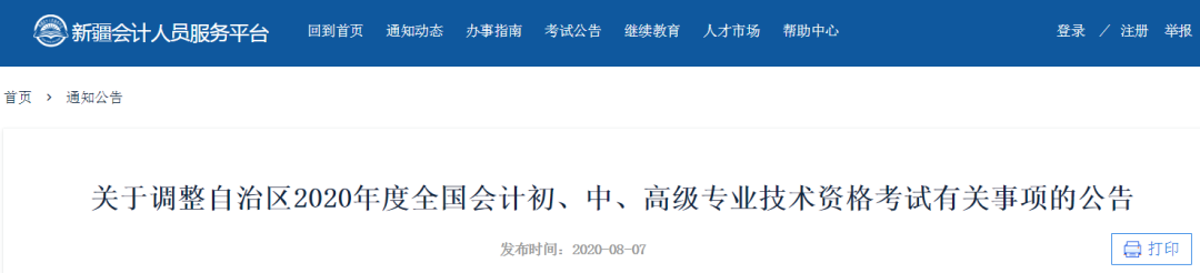 新疆维吾尔自治区财政厅发布《关于调整自治区2020年度全国会计初、中、高级专业技术资格考试有关事项的公告》,以下为通知摘要:http://www.gkkp.net/