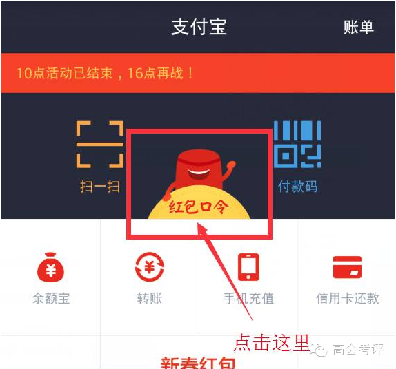 打开支付宝钱包,点击红包口令按钮输入口令即可领取。http://www.gkkp.net/